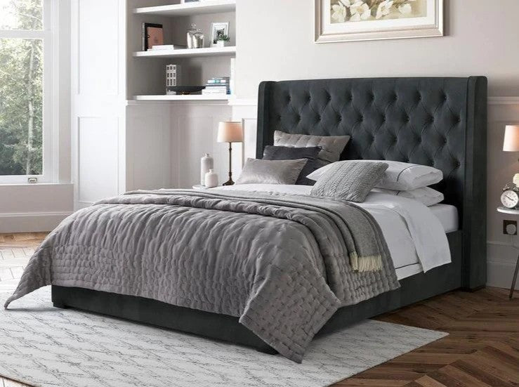 Upholstered Beds are covered in light padding and fabric which gives a textural appeal; they could be made with velvet, leatherette, suede or simple fabric upholstery and typically have tufted or straight streamlined headboards.