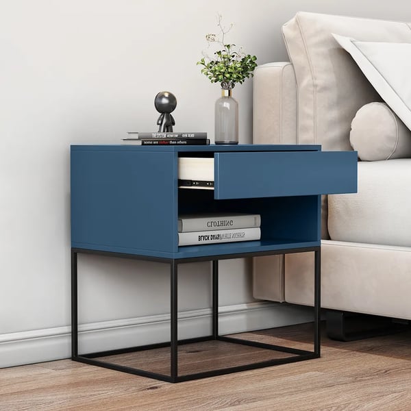 Roman rich blue bed side table with drawer