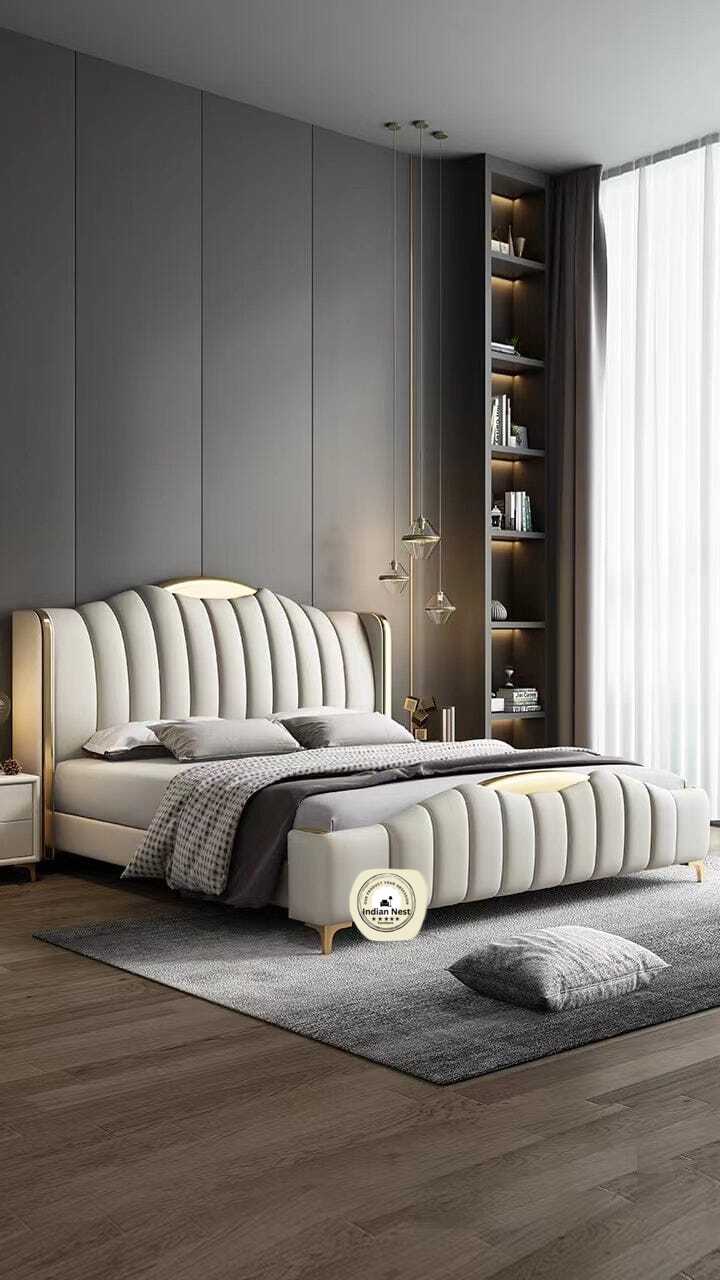 Upholstered Beds are covered in light padding and fabric which gives a textural appeal; they could be made with velvet, leatherette, suede or simple fabric upholstery and typically have tufted or straight streamlined headboards.